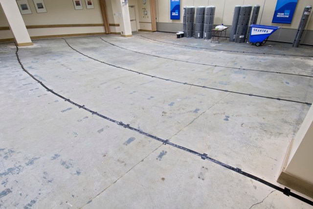 The actual loop is a copper wire laid under the carpet, giving off an electromagnetic signal that can be picked up by a receiver.