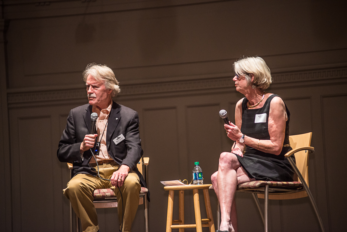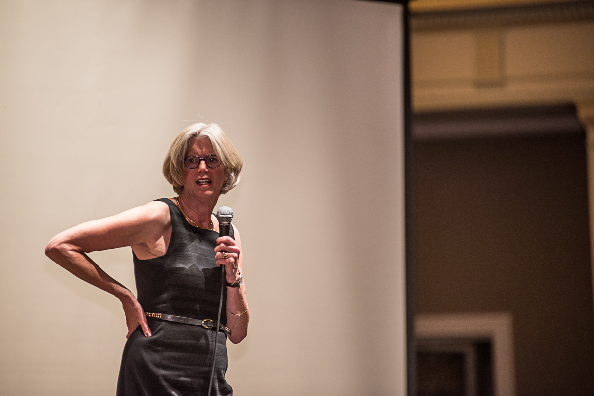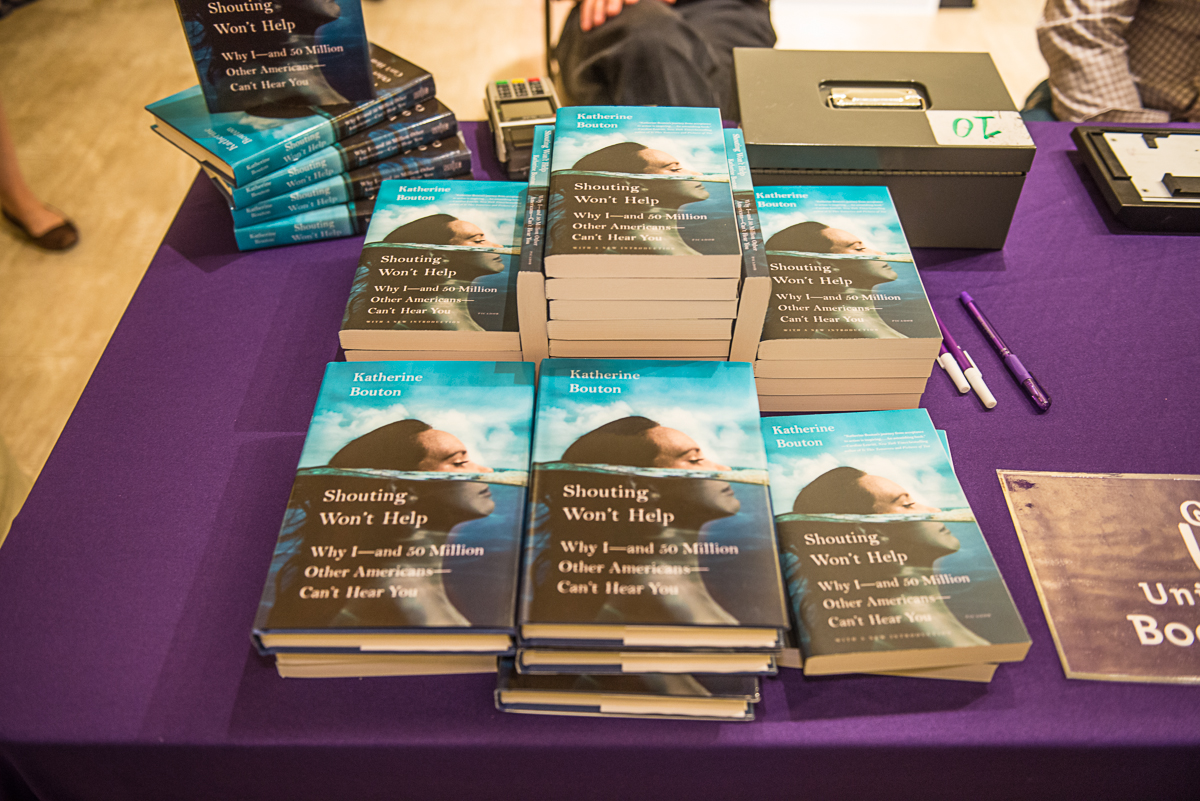 And speaking of big names, yes, that’s Katherine Bouton with her hand on her hip in the above pictures. We were thrilled to have her back in Seattle to celebrate the launch of Town Hall’s hearing loops on September 15, 2014. Bouton shared information on her personal journey through hearing loss and chatted onstage with veteran Seattle broadcaster Mike James.