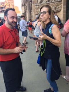 Getting help with the assistive listening system at Sagrada Famiglia.