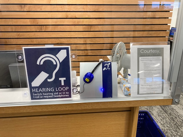 Let the hospital or clinic know that communication access options such as hearing loops are available. Counter (point-of-service) loops are inexpensive but life-changing.